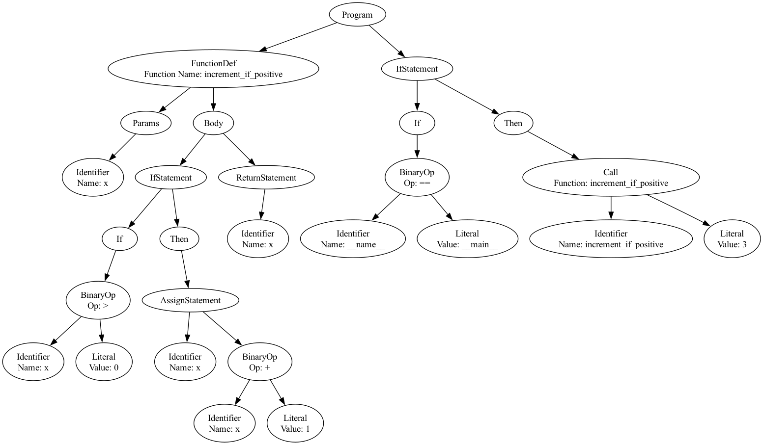 increment_if_positive(3)And then, here is an example of the AST generated for the whole program above: